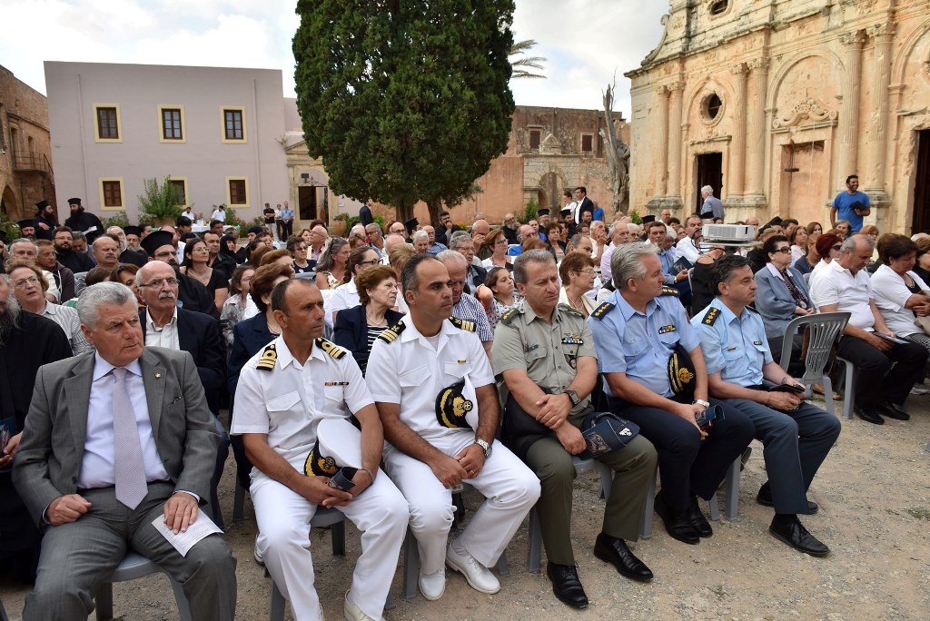 Διά τοιούτων ουν αισθημάτων εδέχθημεν λίαν ευμενώς, άγιε αδελφέ, την είδησιν περί των Εγκαινίων της Πινακοθήκης της Ιεράς Μονής Αρκαδίου, γνωρίζοντες καλώς ότι τα εν αυτή εκτιθέμενα έργα των αριστοχείρων ζωγράφων, οίτινες ενεπνεύσθησαν άλλοτε υπό του κάλλους αυτής και άλλοτε υπό του συγκλονιστικού και τραγικού γεγονότος του ολοκαυτώματος αυτής, ομιλούν, δια του χρωστήρος, εις την καρδίαν των ορώντων ταύτα και διηγούνται ημέρας ειρήνης και πολέμου, ησυχίας και αγωνίας, δόξης και ατιμίας, προόδου και καταστροφής, παραπεμπούσας εις την καθ᾿ όλου πορείαν της Μεγαλονήσου Κρήτης και του Γένους ημών εις το ιστορικόν γίγνεσθαι, ακολουθούντων την οδόν εκείνην, ήτις δια του σταυρού άγει εις την δόξαν της Αναστάσεως και εις την αληθινήν ελευθερίαν. Διότι δεν πρέπει να λησμονώμεν ότι η μοναδική αληθινή ελευθερία είναι η παραμονή εν τω Θεώ• το δε δίδαγμα τούτο παρέδωκεν εις τον λαόν και εις ολόκληρον τον κόσμον η Ιερά Μονή Αρκαδίου.