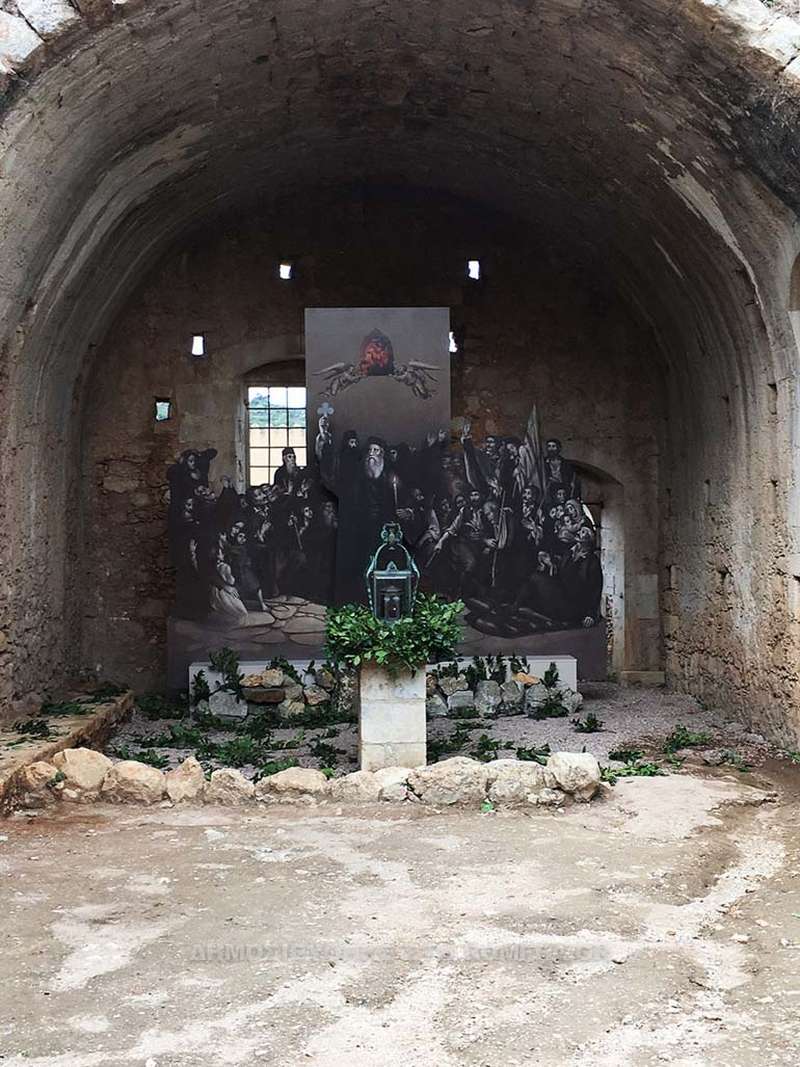 Το έργο κοσμεί από την Τρίτη 1η Νοεμβρίου 2016 την Πυριτιδαποθήκη του Μοναστηριού, σημείο, από το οποίο οι φλόγες της ιστορίας συνεχίζουν να εμπνέουν και να λαμπρύνουν την οικουμένη μέσα από τις πράξεις αυτοθυσίας που έλαβαν χώρα σε εκείνο τον Ιερό για την Χριστιανική πίστη και τα ιδεώδη της ελευθερίας χώρο.